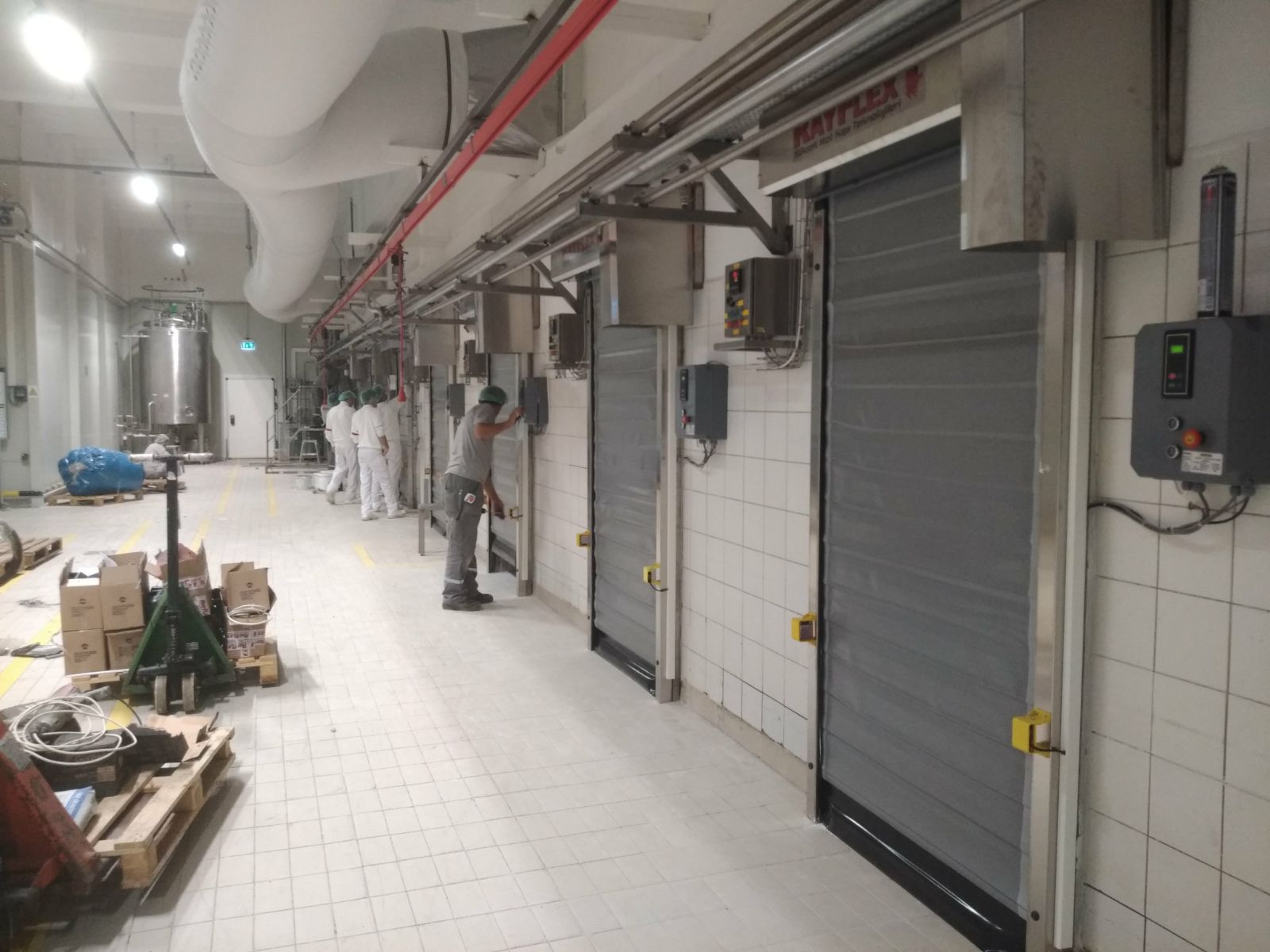 - Gıda Üretim Tesisleri: Özellikle soğuk zincir gerektiren gıda üretim tesislerinde, sıcaklık kontrolünü sağlamak için izolasyonlu kapılar kullanılır. Bu, ürünlerin kalitesini korumak ve güvenliğini sağlamak açısından önemlidir.